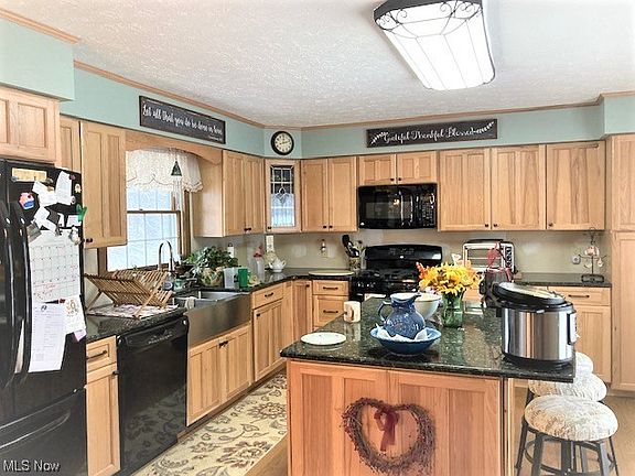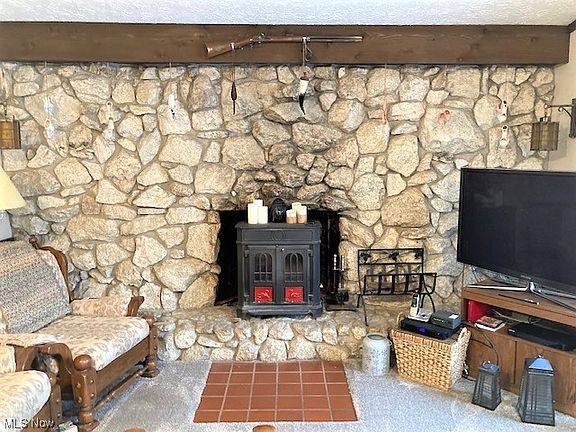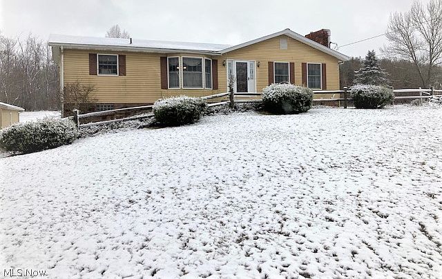 Nice country ranch setting on just short of 2 acres. This 3 bedroom, 2 full bath home features an open floor plan with a spacious great room with a full wall stone fireplace, dining area with a bay window Flowing into the kitchen. The kitchen has been updated with Hickory cabinets, granite counter tops, a large prep island and oak floors. Patio doors exit to a tiered, elevated deck. The hallway leads to 3 bedrooms and a full bath. The walkout basement offers a 26X25 family room with a full bath and plenty of storage. There is a oversized 2 car, detached garage.