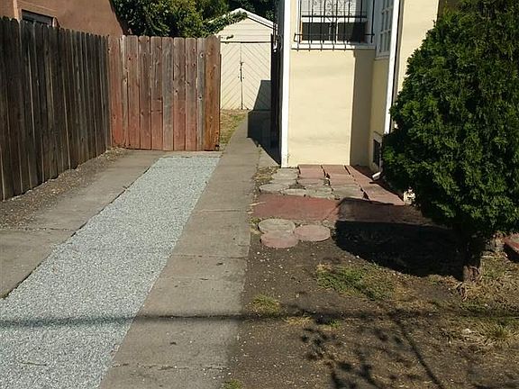 Well Laid out Home with huge yard space with fruit trees and crushed granite patio area. Sep garage structure. Newer Roof. New flooring, New Appliances. Sunny space. Large rooms. Gated, Near BART/Not Far From Oracle Arena. Laundryroom. Sewer clearance by COE. Great Starter Home! Shown By Appt. there is a house sitter Plz Do Not Disturb w/o your Realtor. Friendly dog belongs to house-sitter.