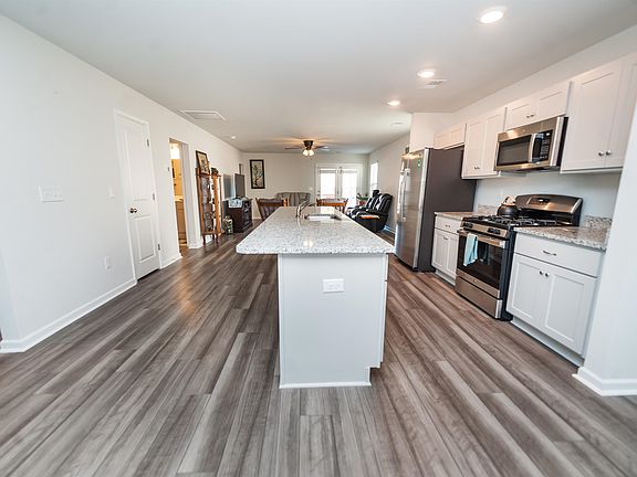 Beautiful Brunswick 1 level open floor plan features three bedrooms and two baths. As soon as you step inside you will love the open concept with LVP that spans from the dining all the way through the kitchen and family room. Stainless steel appliances, and a huge kitchen island. Modern gray cabinets throughout the home and beautiful granite countertops in the kitchen. The primary bedroom is located in the back of the home and features a walk-in closet, dual vanity, five-foot walk-in shower, and linen closet. The two secondary bedrooms have walk-in closets as well and are separated by a full bathroom. Enjoy the outdoors from your patio & covered porch which is located just off of the family room. Seller's loss is your gain they sadly have to relocate after just purchasing this lovely home. They have added a privacy fence, ceiling fans and knobs on cabinets. Priced below new construction and offers more. Very Close to shopping, restaurants and medical.