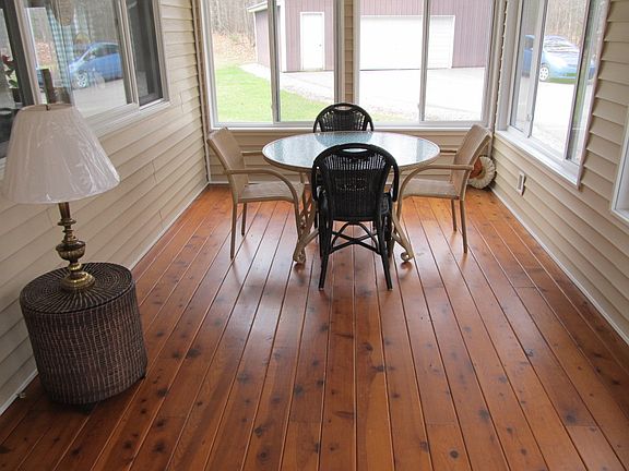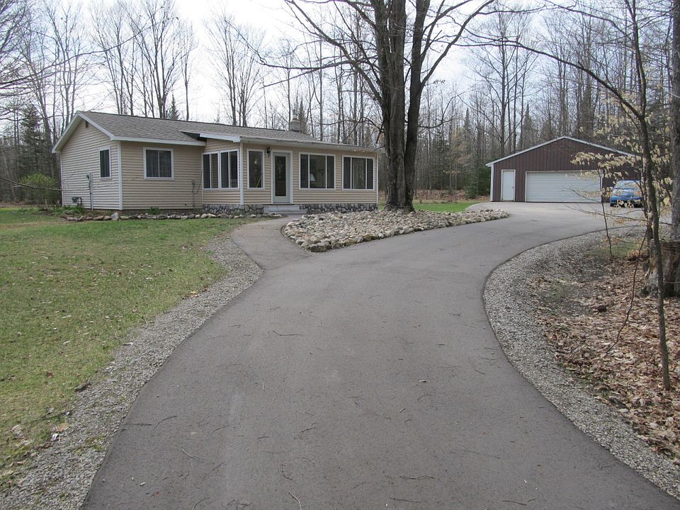 35 AC w/approx. 1055' frontage on Brady & 1,320' frontage on Kisser. AC has trails that run through a mixture of beautiful hardwood (some ironwood)& pine. Terrain is a mix; mostly high w/some low land where wildlife abound. The well maintained home has newer windows, roof, carpeting, & black top circular driveway. Includes a large sun room, gas log FP, forced air powered by natural gas, maintenance free deck, & 24 x 36 pole barn. The home, tucked in the trees back from the road, has a nicely landscaped yard w/many colorful perennial flower beds & garden space.