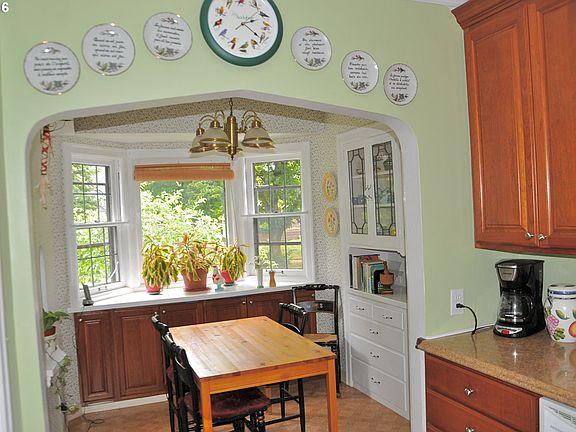Traditional home, Tudor, on friendly,tree-shaded street has formal LR and DR,mahogany woodwork, doors, corner china cabinets, main flr: oak,refinished. 4 Br(one used as den) kitchen - nook, new cherry cabinets, built in trad. sideboard to display - your choice! 1.5 BA, both new wallpaper. New roof 5/16, full bsmt 40 x 40 ft, high efficiency gas furn, seismic upgrade, sliding glass doors to deck 10 X 30, potting shed, blt 1937, 3200 sq