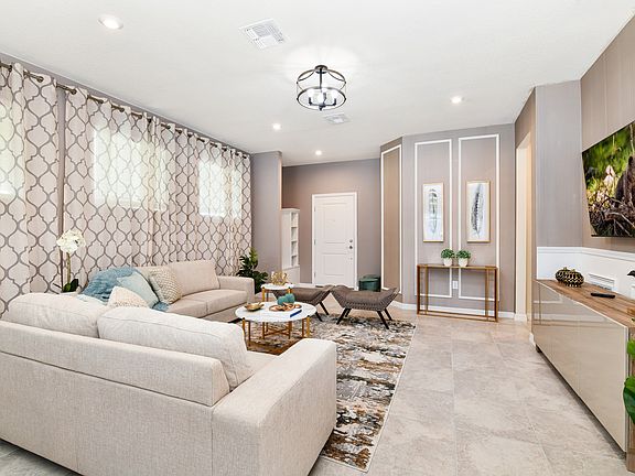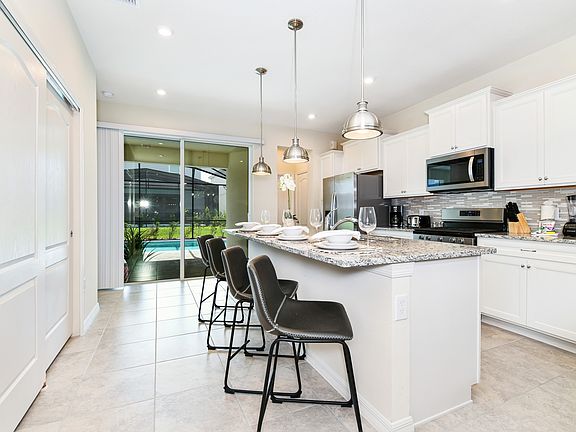 You can't miss the opportunity to live in a new home located inside of Solterra Resort. The house has plenty of space to accommodate your family, an amazing pool, a walking closet, and a bedroom on the first floor. Located in the 24 hr Guard gated community of Solterra Resort near the Disney Attractions. This beautiful Brand New 2 Story Home features 6 bedrooms, 4 Full and 1 half baths. Generous living space and open floor plan with plenty of room to entertain. The backyard features a private pool and heated spa with a screened in Lanai and a scenic view of a pond and conservation area. Enjoy all of the community amenities such as the Fitness Center, Tennis Courts, Beach entry heated pool with a slide, a Lazy River and poolside Bar and Grill. Highly rated schools in the area.