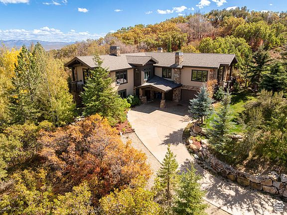 Welcome to Luxury, Comfort and Convenience in this Meticulously constructed Stone and Stucco estate featuring great room concept with soaring vaulted ceilings, Chef's kitchen. Spa- inspired Primary Suite with Fireplace, jetted tub, steam shower and private balcony. 3 additional bedrooms, 2 Offices, 4 bathrooms, gym, and a Family room. Granite Counter Tops. Hardwood, Slate and carpet floor coverings. Elevator, heated driveway, 3-car oversized heated garage. Pella triple pane windows. Beautiful private yard with expansive views. This home blends timeless elegance with modern amenities perfect for discerning buyers seeking luxury, privacy, and comfort.