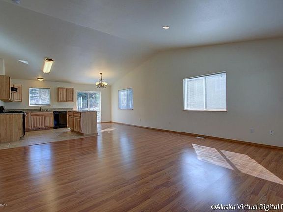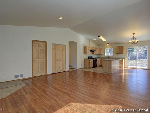 Like-new Ranch, off lake Otis/72nd, sunny, bright, open concept living & once inside, everything is on the same level! From the entrance, gaze into an expansive living area with vaulted ceilings, warm laminate flooring and a chefs kitchen too! Beautiful hickory cabinets & granite counter-tops that add class!Extra large garage (606 sq ft), perfect for a 'man-cave,' workshop, or more storage space!