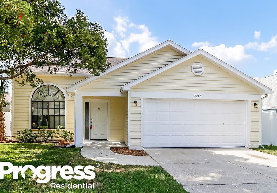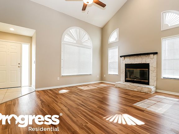 Modern design creates an inviting space in this three-bedroom, two-bathroom rental home in New Port Richey. The tiled foyer leads into a two-story great room, which boasts a unique semicircular window and stone fireplace. The adjacent dining area features a chandelier and luxury vinyl flooring, creating a welcoming atmosphere for dinner parties. In the kitchen, illumination comes from the inset light fixture, while stainless steel appliances make cooking a breeze. The first-floor master suite boasts dual closets and a ceiling fan. A new vanity with new countertops and chrome fixtures graces the suite's bathroom. This home also includes an enclosed patio and fenced-in backyard. Be sure to reserve a time to tour this renovated rental home. Note: The listed amenities may not be accurate. Please consult with a Progress Residential leasing agent to confirm the property will meet your individual needs.