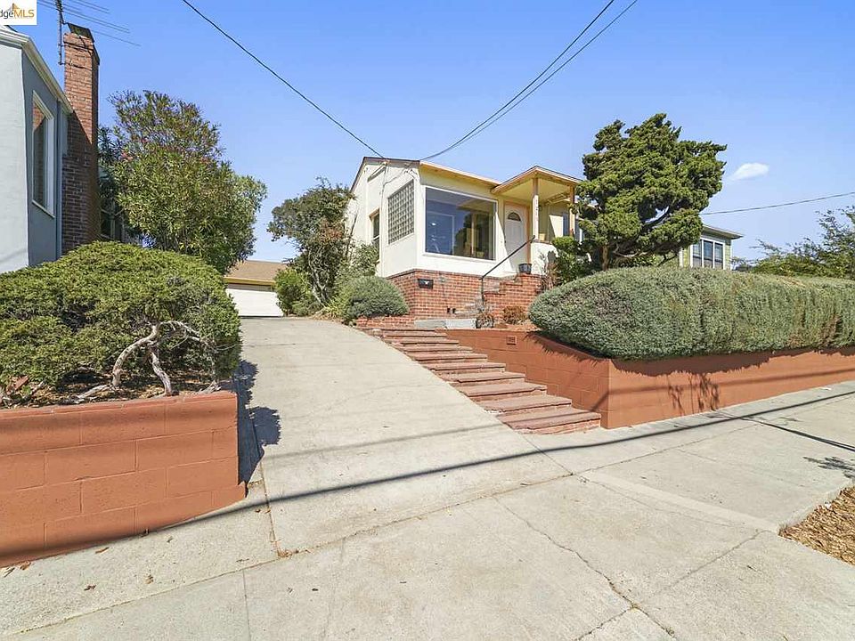 Perched above the street this home enjoys expansive views of Berkeley and downtown Oakland from the living room and a great view of the Golden Gate bridge from the front porch and the foyer. Bright living/dining room combo. New laminate and/or vinyl flooring throughout. Updated eat-in kitchen with freshly painted cabinets, new flooring, counter, sink and light fixture. 2 bedrooms in the back and an extra bonus room in front used as the 3rd bedroom or office. Large 2-car garage at the back of the garden with long driveway. Close to El Cerrito Plaza, Bart station, schools, shops and restaurants.
