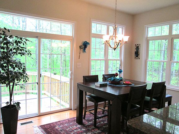 OPEN SUNDAY! Beautiful, 4 yr. old home nestled in woods on large lot. Ten foot ceilings on three levels. Dramatic two story foyer, wood floors on main level, large living/dining rms w/ wainscoting & heavy crown molding. Beautiful eat-in kitchen/family rm with cozy gas fireplace. Kitchen has cherry cabinets, large island, granite, SS appliances & deck. Master bedrm w/multiple closets & lge. bath. Backs to woods.
