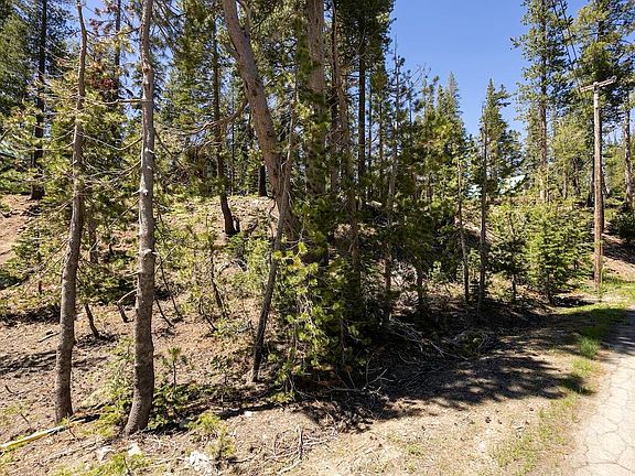 Beautiful sloped lot in Serene Lakes a couple blocks to the water, ideal for a chalet with privacy in the rear. Power, sewer and water are located on the street. If you haven't discovered this neighborhood, you'll be entranced by its quiet peaceful location. Easy access to trails, skiing, biking and hiking all from your door, yet tucked away from the crowds that Truckee and Tahoe have. The voluntary HOA allows you to keep a couple paddle boards lakeside and the homeowners beach is an incredible spot to spend a summer's afternoon.