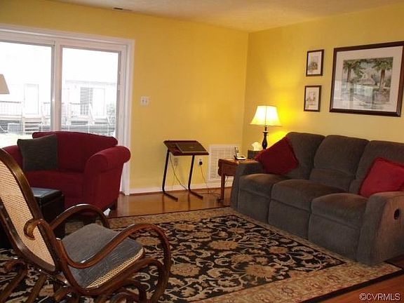"1st Offer to Resale. LOVELY-Spacious Townhouse in Branch's Trace. Conveniently located close to Hwy 288 & Chesterfield County Complex. Nestled in a quiet, private neighborhood. Low Association Cost, covers Exterior Maintenance, Snow, Refuse & Lawn Care. Over 1200 sq. ft in this 2 bedroom Unit. Immaculate Condition AND Move-In Ready! Open Living & Dining Room on Bellagio Collection, ""American Oak"" Laminate Wood Floors with a 25 year transferable warranty. Wood Burning Fireplace, never used! Breakfast Nook is bright & Sunny, pantry & newer appliances with smooth top - convection oven. Great Counter & Cabinet Space! Replacement Vinyl Windows, 2013, with warranty. New Pella Rear Slider with interior blinds & New Front Storm Door. New Roof in 2012, New Exterior Siding 2013. Pull down attic with partial flooring. Rear Deck & Exterior Storage Area. 2 Ton, 13 Seer Rheem HVAC. Neat as a Pin - Turn Key, this is a MUST SEE!"