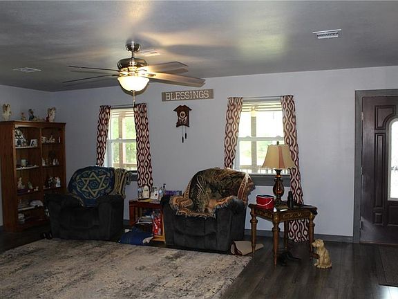 Price Just Reduced!! Wide Open Spaces! 1 Bedroom 1.5 Bath Like-New Home on 1/2 acre with views of rolling pastureland near Proctor, OK. Built 2019 has 1100 sq ft, one large master bedroom, bathroom & walk-in closet. Off the Living room is a Half bath w/utility room large enough for freezer or possible small bdrm conversion. Kitchen hickory cabinets, all appliances stay. Covered 8 ft. porch on two sides. Total electric central heat/air, heavy metal, well insulated & energy efficient, Rural water, Fiber optic. 24 x 30 Carport & Workshop.