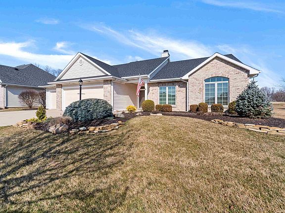 Prime villa living at it's very best in Cherry Hill! Premium GOLF course views, so many updates, totally move-in ready. Enter from the tiled portico; Enjoy plentiful light from the BIG windows in Great Rm, Bkfst Rm, Primary Bdrm. French Doors in entry open to Den/Office; can also be 3rd Bdrm. Generous great room with gas log FIREPLACE, built-in cabinets and open shelving on either side. Granite counters, Breakfast bar, SS appliances in kitchen, all stay, (also Washer and Dryer). NEW primary bathroom tiled shower 2023, NEW carpet in great room, hall and bedrooms; several NEW LED light fixtures, NEW blinds in great room, primary bedroom, & patio door; NEW toilets. CLOSET Tamers Primary Bdrm, Hall Pantry, Bdrms 2 & 3 in 2023. Light & Bright 3 Season Rm w/custom tile flooring. Fresh paint throughout, including garage. NEW complete tear-off roof shingles 2023; HVAC NEW 2018, last serviced 2-2024. Free-standing cabinets in garage remain. Additionall features include stamped concrete patio, 2023; deep sink in garage. Be sure to see this beauty before making your buying decision.