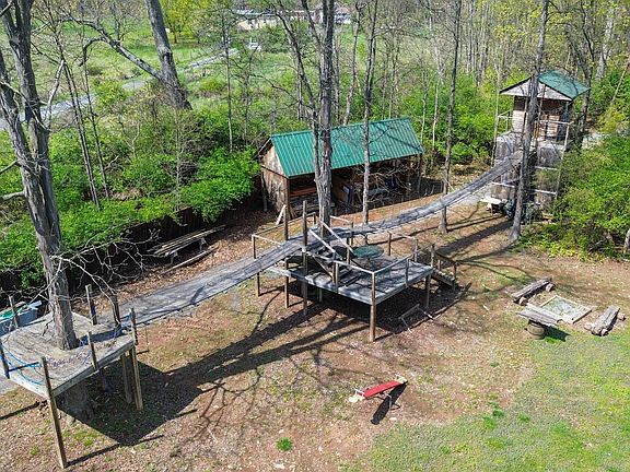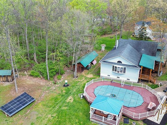 Escape to your own slice of paradise with this stunning, tranquil, country retreat nestled on 6.16 acres. As you approach the main house, you'll be captivated by the charm of the wrap-around porch, the perfect spot to savor your morning coffee or unwind after a long day. Step inside to discover a spacious main floor boasting two bedrooms and a full bathroom. The heart of the home lies in the inviting great room. With its vaulted ceilings, plenty of natural light and great views of the property, this expansive room is perfect for entertaining guests or simply enjoying a quiet night in. The spacious eat-in kitchen features a Bluestar professional stove/range complete with two ovens, 6 burners and a griddle. The amazing, connected walk-through pantry provides plenty of cabinetry for all of your cooking and organizational needs. Continue your entertaining in the formal dining room! The main floor also features a convenient office with a built-in desk and cabinetry. Another convenient feature is the first-level laundry. Upstairs, you’ll find a private suite with a spacious bedroom, large closet and full bathroom with clawfoot soaking tub. Venture downstairs to discover a versatile lower level featuring a fourth bedroom, full bathroom, a recreation or hobby area, and an additional room ideal for accommodating guests or participating in your favorite pastimes. Another gem on this property is the separate 3-car garage, meticulously designed with custom built-in cabinetry and workbenches, offering the perfect space for your vehicles and projects. Work in comfort with the luxury of central AC and heating, ensuring optimal temperatures year-round. Plus, with a dedicated ventilation system designed to manage wood dust, you can focus on your craftsmanship with peace of mind. Above the garage, the possibilities are endless for the recently updated two-bedroom, one-bath au pair or guest suite with central AC and heating, which boasts beautiful views of the property! Step outside and experience a true outdoor oasis, with two firepit areas, multiple pavilions, and several outbuildings/sheds providing plenty of space for storing tractors and tools. The enclosed dog kennel can accommodate your furry friends. Need extra space for storage? There is a large storage area easily accessible from outside or the lower level. The home is wired with a backup generator--offering peace of mind during unexpected power outages. The real highlight of this property is the pool area, complete with a solar-heated above ground pool with a custom Trex wrap-around deck, retractable electric awning and a hot tub surrounded by a covered deck--all creating the perfect setting for endless hours of relaxation and entertainment! For the adventurous spirit, a custom-built treehouse awaits, complete with a suspension bridge and composting toilet in a separate outhouse building, offering a unique retreat amidst the tranquil surroundings. And for nature enthusiasts, wooded walking trails meander throughout the property, inviting you to explore. With the added bonus of a wood-burning furnace providing cost-saving heating options, along with other heating methods available, this home offers both luxury and efficiency in equal measure. Don't miss your chance to make this exquisite country retreat your own!