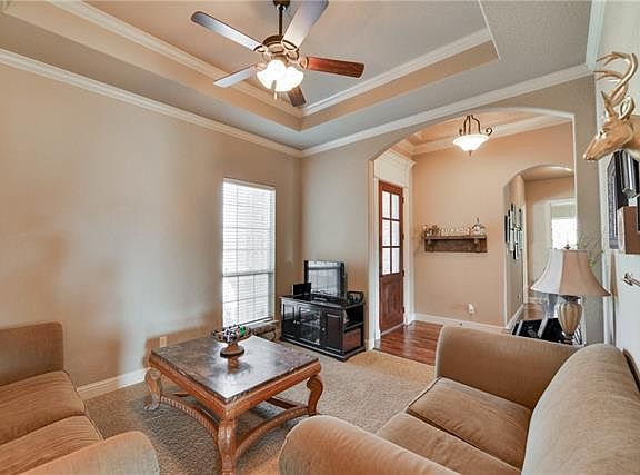Better than new John Houston home in the gated community of Texanna Ranch! This home features 4 bedrooms, handscraped hardwood floors, walk in closet in two secondary bedrooms, gorgeous beams in living, large laundry w built ins and large covered patio.The kitchen has beautiful white cabinets w upper and lower lighting, huge island, granite, desk area and walk in pantry. Large master suite w his and her vanities and BIG walk in closet. MUST SEE!