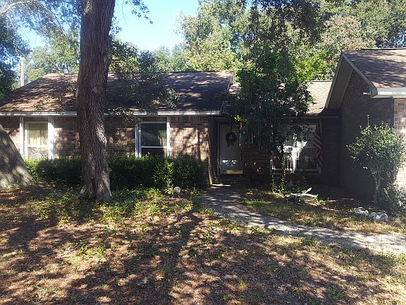 Open floor-plan home in peaceful Bridle Trail Estates. Close to NAS Pensacola and the Naval hospital, this property is a perfect home for a military family or rental investor looking to make $1,200 or more every month. The interior is spacious and has great flow. The living area has tall, cathedral ceilings and a charming brick fireplace. It's open to the dining area that has a reclaimed wood accent wall and easy access to the kitchen and backyard. The master suite has his and hers walk-in closets, and an ensuite bathroom with a soaker tub and dual vanities. The large backyard wraps around the home with mature trees and a covered back porch perfect for summer barbecues. Some other great features of this home are the included hurricane shutters, security alarm, and 2 car garage.