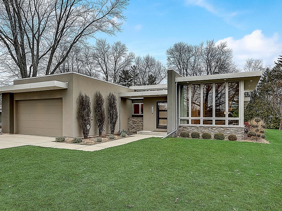 Exciting modern contemporary 2011 built ranch in a prime location. Numerous upgrades & recently fully finished lower level offers spaces for all your needs. Captivating living spaces w/ one of a kind details & finishes. The warm & inviting living room has soaring ceilings, stunning stone gas fireplace, built-ins & a wall of windows. The heart of the home is the gorgeous kitchen w/ oversized island & all appliances. Eating area opens to the composite deck w/ louvered deck roof allowing comfortable seasonal outdoor living. Find your personal oasis in the master bedroom suite w/ walk-in closet & bath w/ a luxurious shower. New lower level family room & rec area, 4th bedroom w/ egress window, full bath & wet-bar. Great usable yard w/ privacy & proximity to so much. Amazing opportunity!