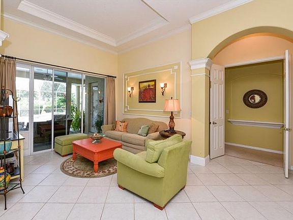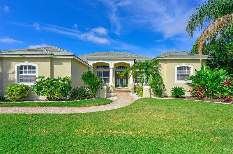 Outstanding curb appeal for this tropical landscaped 4 bedroom, 3 bath home situated on over a half acre lot on the 17th fairway of the River Club Golf Course. This home is absolutely stunning and shows like a model. Exquisite quality and attention to detail abound in this spectacular custom built home offering a formal living room with tray ceilings, crown molding and sliders to the outside area, a formal dining room, a family room with built in shelving and cabinetry, tray ceilings, and sliders to the lanai area as well. The updated gourmet kitchen sports stainless steel appliances, granite counter tops, tile back splash, crown molding and an eating area featuring a large aquarium window looking out to the pool. The master retreat has a sitting area and walk in closets and the master bath has his and her sinks with granite counters, a soaking tub and a separate shower. There is a home office/den and 3 additional bedrooms for the large family or guests. The over-sized lanai offers an entertaining area, outdoor shower and a heated pool and spa overlooking the lush landscaped yard and golf course. River Club is a highly desirable deed restricted neighborhood w/NO CDD fees, large lots, & is in close proximity to A rated schools, dining, the new UTC Mall, theaters, I-75, airports, Lakewood Ranch Hospital, and just a short drive to our famous Siesta Key Beach, Lido Key, and St Armand's Circle. Schedule your private viewing today - you won't be disappointed.