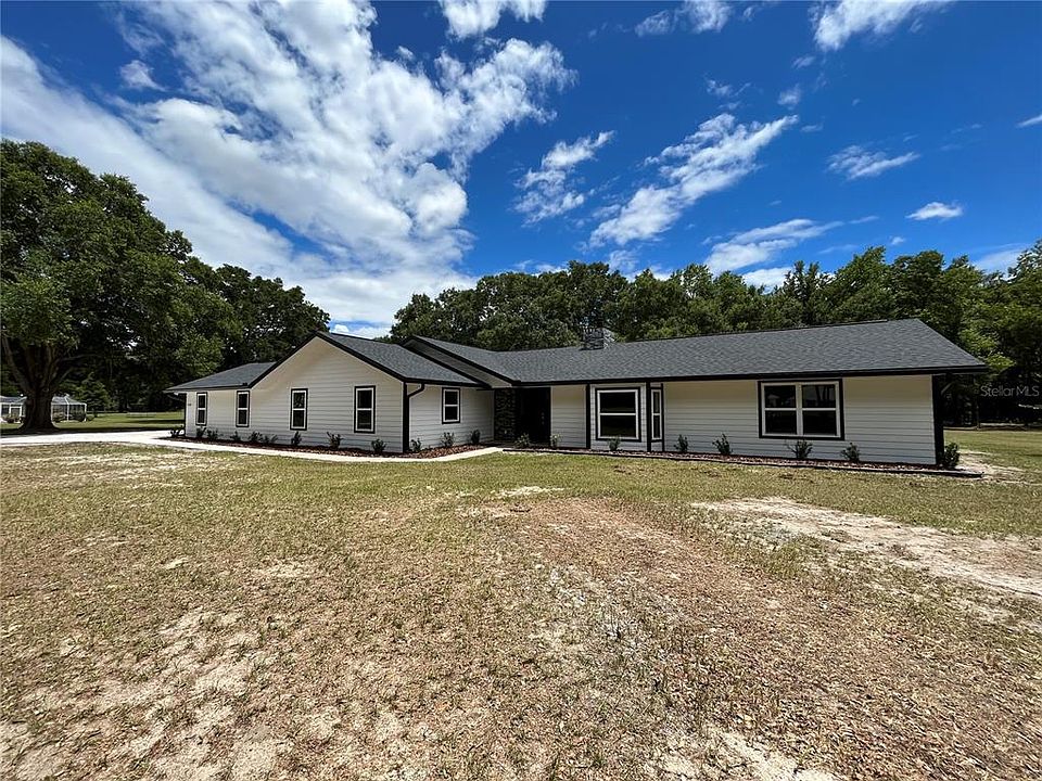 From the moment you drive up to this 5 bedroom, 3 bathroom home, it’s easy to see that this is no cookie cutter house. This newly renovated home sits in a gated equestrian community just a few miles from the World Equestrian Center. It features cathedral ceilings in the great room, craftsman style trim work, two brick fireplaces, new flooring throughout, as well as all new windows and doors. The kitchen features all new appliances, quartz countertops, and solid wood custom cabinets. The master bedroom features a walk in closet. The master bath consists of a custom cabinetry vanity, a walk in shower, and a pedestal tub. The exterior boasts a brand new roof, new siding, brick accents, a large back patio, a newly added attached 2 car garage, and a lush lawn with beautiful oak trees all on 3 acres. Come check out this custom home conveniently located right off SR 200 in Ocala!