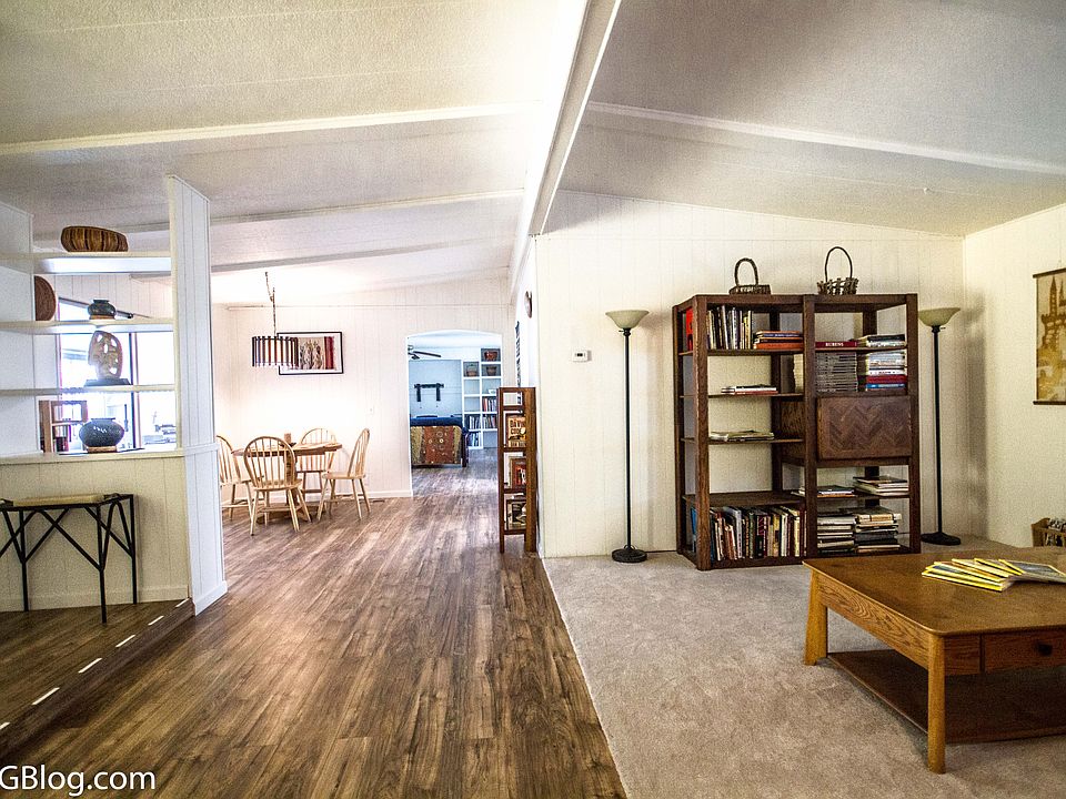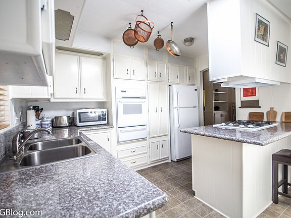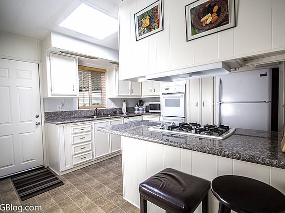 Two complete living/bath/bedroom areas at each end of the home! The updated home is close to the front gate and the pool/fitness center. Enjoy life in coastal Carlsbad in a very comfortable home near all that you need - shopping, transportation, health care, and friends! Carpet in the living room and bed rooms with laminate in the entry, dining area, and family room. New stone counter tops in the kitchen and bathrooms. Large walk in showers. Large back yard terraced for growing plants. Value Priced. $1,450 per month land lease. 55+ Gated Community near the beach.