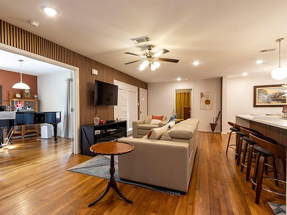 Mid-century modern in style, but major renovations completed by January, 2025, with all new mechanicals (HVAC, PEX Plumbing & Electrical). Beautiful brick exterior was reworked in the German Schmear style. The interior has an open concept of living, dining & kitchen combined. Custom kitchen cabinets with soft close feature & custom hardware. Kitchen appliances are stainless steel Frigidaire. Gas range has an air fryer oven. Kitchen island has a Sharp microwave drawer & pop-up electrical outlets. Stainless steel Farm sink from Zuhne. Primary bedroom has large ensuite bath. One of the other three bedrooms has French Doors opening to living room & currently has a grand piano. GE Profile Heavy duty/large capacity stackable washer/dryer with 10 warranty. The garage is over-sized 2 car with garage floor having a Polyurea/polyspartic coating & two custom floor drains. Recent roof with CertainTeen Landmark hand nailed shingles with 30+ year life w/attic having R30(12")blown-in insulation.