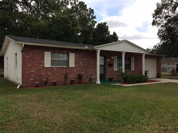 This charming house welcomes you with its eye catching brick exterior, two LARGE bedrooms, eat-in kitchen, generous living room and dining area, and enclosed Florida Room which is not included in the square footage. It is ready to go and also includes a big open patio - Great BBQ space! - overlooking a neighborhood park area with playground for your little one! The garage has LOTS of storage and a washer and dryer included in the price. A half bath is contained in the laundry area. There is much to appeal to the next tenant, including fresh paint, ceiling fans, and a wall nook for your china cabinet in the dining area! Now is a great time to be home before the holidays, and the Owner may consider a small pet.
