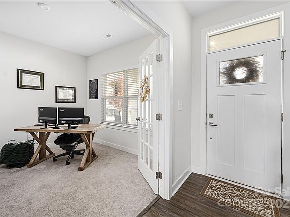 Coming Soon! Welcome to 7218 Waterwheel St located in The Mills at Rocky River—an inviting 3 bedroom, 2.5 bathroom home set on a serene 0.22-acre lot backing up to the Rocky River. Your next chapter begins in this beautifully crafted home! Craftsman touches and peaceful treeline views create a warm atmosphere from the moment you arrive. Step inside and be greeted by a private office with French doors that offers the perfect workspace. Step further in to find an open floorplan that connects the kitchen, dining area, and living room, all enhanced by large windows overlooking the Rocky River treeline. The downstairs living areas are filled with beautiful natural light, creating a bright and uplifting space throughout the day. The kitchen features sleek white cabinets, granite countertops, ample storage, and a large island, with a bright dining area surrounded by windows. Behind the kitchen, you’ll find the garage entry, a stylish half bath with wallpaper accent wall, and a spacious double door pantry. Upstairs, a cozy loft is an excellent second living area, reading nook, or media space. The oversized primary suite offers great space, while the primary bathroom includes dual vanities, a private water closet, and a tucked away-private shower! Well rounded with a generous walk-in closet featuring an additional window to continue the theme of great natural light throughout this well thought out floorplan. Two secondary bedrooms sit near the full bath and upstairs laundry room. Step outside and enjoy the backyard completed with a full wooden privacy fence! With its craftsman details, flexible layout, and abundance of natural light, 7218 Waterwheel St, Concord NC welcomes you to call it your next home!