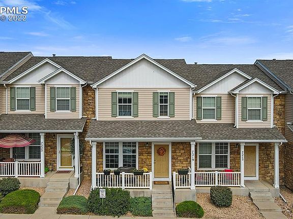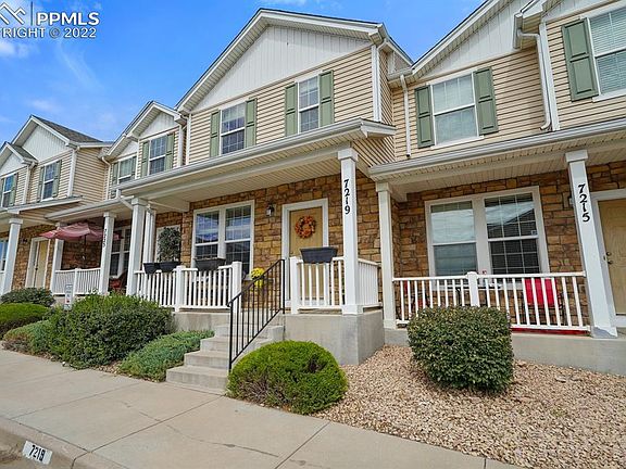 Beautifully remodeled townhome is ready for you to move in and enjoy. The 19x5 covered front porch is perfect for visiting & relaxing. Upon entering you will notice an open and spacious floor plan. The Living Room and Dining Area has has a coat closet, ceiling fan/light in LR and hanging light in Dining Area, new wood laminate flooring which continues through the kitchen. The large Kitchen offers a pantry with an eat-in nook and walk-out to back porch, can lighting, new faucet, and disposal. The covered back porch has mountain views to enjoy and features a storage closet with water heater. The main level offers a nice sized 1/2 bath that has been remodeled with new tiled flooring, light, mirror and bathroom fixtures. New carpet on the stairway, hallway, and loft area on the upper level. Upstairs you will find two large bedrooms with new wood laminate flooring. The full sized bathroom has been completely remodeled with tiled flooring, new cabinet and new fixtures. The laundry closet also has updated wood laminate flooring and is located in the hallway. The primary bedroom has vaulted ceilings, 3x7 walk-in closet, ceiling fan/light and attached full bath that shares with a door to the hallway too. The interior has been freshly painted with the new natural color palettes. The second bedroom is the same size as the primary bedroom, has a ceiling fan/light and smaller 4x3 walk-in closet. There is a walking trail behind this townhome unit that goes to Metcalf Park. Within walking distance to Fountain-Fort Carson H.S. Shopping on the Fountain Mesa and Hwy 85/87 are minutes away, close proximity to I-25, Ft. Carson, and Parks.