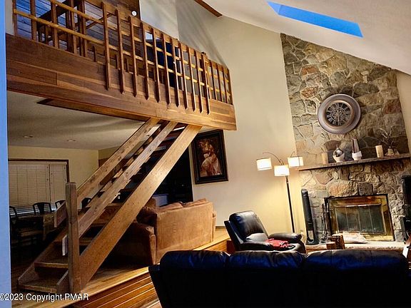 PRICE REDUCED. MORE THAN ENOUGH TO COVER REPAIRS. Home has large open floor plan, sunken living room with fireplace and hardwood floors. Deck and balcony for relaxing and entertaining. Located on quiet cul de sac. Conveniently located to the many Pocono attractions, water parks, skiing and casinos.