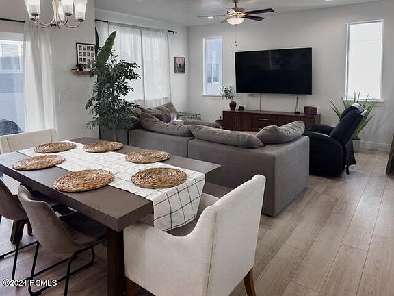 Gorgeous south facing, single family home in the heart of Silver Lake, one of Utah's most popular and growing communities in Utah County. This home is practically new and was completed in 2022. Beautiful finishes throughout including white cabinets, quartz countertops, stainless steel appliances and upgraded flooring. As one of Flagships most popular floorplans, it offers 3 bedrooms / 2.5 baths and a basement that is 90% complete; just needs carpet and could easily accommodate a 4th bedroom. This home has been gently lived in and well taken care of!