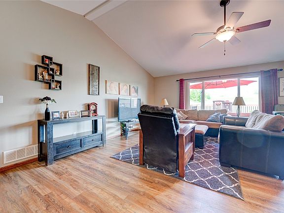 College Community Ranch in desirable Prairie Hills development with a short walk to school. One owner home that has been very well maintained and upgraded! You will enjoy large, deep, lot from your oversized deck off the kitchen area. Home features vaulted ceilings in great room, kitchen, dining room. Drop zone off 3 car garage. Luxury plank floors in great room, kitchen and dining room. First floor laundry room. Larger owners closet and private bath. Lower level has a conforming bedroom and full bath with large rec room area with back bar. This home has been very well cared for and is a pleasure to show.