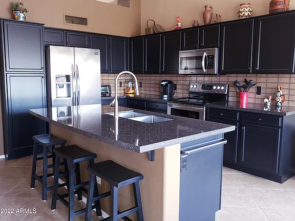 Stunning landscaping and a coated walkway welcome you to this 4 bedroom, 2 ½ bath home. Bordering common area on the side and in back, this home has only one direct neighbor! Pristine condition throughout, updated kitchen with pull-outs, quartz countertops and a pantry closet. Stainless kitchen appliances and high-end washer/dryer. Newer HVAC and Garage Door are programmable via a phone app. Newer water heater. Stylish tile through main living areas and new carpeting in bedrooms. First floor primary bedroom is separated from other 3 spacious bedrooms upstairs. Large windows overlook the park-like back yard with extended patio and beautiful cactus garden. This home is gorgeous - you will not be disappointed!! Will review offers on September 10, 2023.