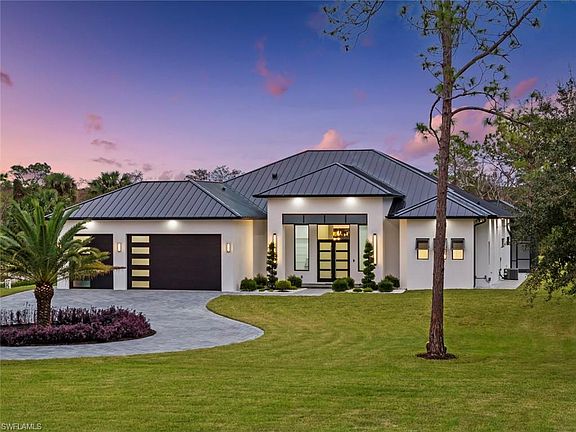 New construction, luxury custom build estates home with high-end upgrades throughout! This unique property sits on 2.27 acres and is entirely cleared with enough space for a guest house or secondary structure. Lush exterior facade includes over 48,000 sq ft of St. Augustine sod, a beautiful roundabout with a canary palm, an entry with pebbles and professional landscaping designs that will take your breath away! The exterior includes lighting for landscaping, 4 royal palm trees and a vast list of tropical fruit trees in the back. Privacy benefits include a 5 foot chain link fence, clusia hedge surrounding the property with an added privacy pool cage. Additional exterior features include: 10,000 sq ft paver driveway, wrap around paver sidewalk around the house, standing seam metal roof with stucco soffit, impact windows and doors and a whole house reverse osmosis water system delivering quality water throughout. Interior finishes include: custom cabinetry throughout, quartzite countertops, outdoor kitchen, pool, spa, and roughly 2,000 Sq ft of concrete deck sorrounding the pool area all with travertine sand set pavers, offering great space for get togethers! All closets include custom cabinetry and high-end flooring is featured throughout all areas. The kitchen is designed for culinary excellence and comes equipped with all high-end: wolf, cove, and subzero appliances. This stunning home features 4 bedrooms, 4 full baths plus a half bath, den and high ceilings with abundant natural light throughout! This beauty reassembles quality and it’s uniquely located in Golden Gate Estates, west of Wilson Blvd with just a short drive to Collier blvd, restaurants, shopping centers and 25 minutes away from the beaches.