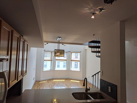 Freshly Painted Lots' of LIGHT Great 2 bedroom 2 bath unit located on 7th & Adams. Central AC, hardwood floors throughout, high ceilings with lots of light, outside deck approximate 24 X 10 great for relaxing. 1 car garage parking for compact to midsize car. Laundry in the building Short walk to light rail, bus to NYC or Path Park and super market close walk NO BROKER FEE PAID BY LANDLORD Credit Check required Separate Utilities 1 year lease Call to discuss security deposit