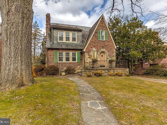 Perfectly charming, thoroughly updated Tudor home on quiet tree-lined street. Brick with stone trim and slate roof. Refinished hardwood floors, fine moldings and millwork. Foyer with updated Powder Room and archway to Living with fireplace. Formal Dining Room with wainscot, Kitchen with granite, stainless steel appliances and breakfast area. Primary Bedroom plus 2 additional large Bedrooms and updated Bath on 2nd Level. Amazing walk-out Lower Level includes Family Room with wet bar, Office and updated full Bath. Nice flat fenced back yard with brick Patio, Fire Pit and large garden shed. Great Anneslie location in the County.