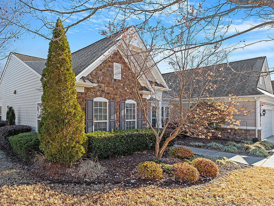 Enjoy 55+ active adult living in this gorgeous Chestnut Garden floor plan with sunroom + extended patio for outdoor entertaining with sitting wall, pavers & natural gas line for the grill. Nestled on a large .29 acre corner lot with stone front exterior. Brand NEW HW floors, irrigation system, Versa-Lift for safe attic storage, NEWER HVAC, Roof & water heater. Frameless shower doors w/added tile, retractable screen door. Kitchen w/center island, slider pull-outs, Zodiac quartz counters, walk-in pantry. Living rm with gas log FP. 3 bedrooms + office/study. World-class amenities, easy 1-story living at its finest!