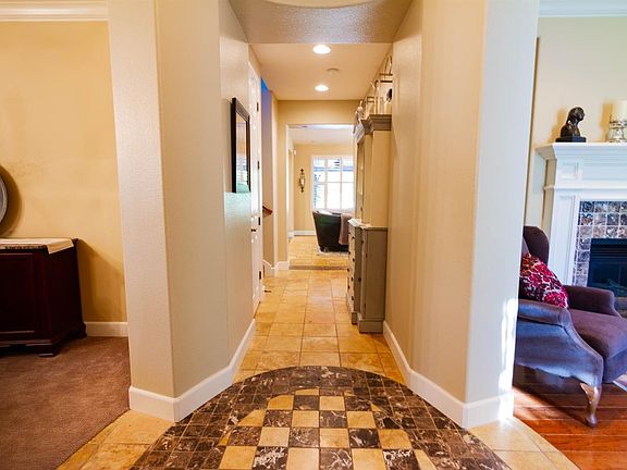 Golfer's dream and entertainers delight!! This sought-after luxury home is located in a gated community on a private golf course. Home is situated in the only cul de sac, on a .42 acre lot. This immaculate 2 story, 3,798 sq. ft. 5 bedroom, 3 full bathrooms, 2 half baths. Gourmet kitchen with granite countertops and island with boasting spacious cabinets. Warm marble tile and carpet flooring throughout. Featuring a private downstairs bedroom with full bath for the perfect guest room. Upstairs master suite includes separate walk-in closets, sinks, walk-in spa-like shower, and a luxurious soaking tub, to melt your cares away. Right off the master suite will be your own spacious balcony, which provides a grand view of the pool, spa, golf course and orchards. Park-like back yard, with covered patio that is perfect for entertaining. Room to create your own botanical garden. 3 car garage with storage cabinets. A MUST SEE!