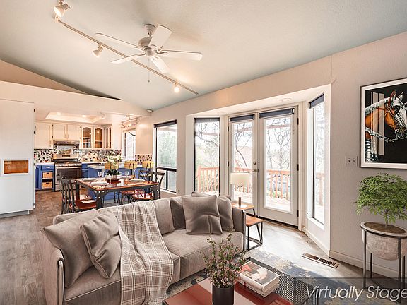 Bright and open floor plan featuring separate family & living rooms and a formal dining room. Cozy wood stove on a brick hearth, vaulted ceilings & recessed lighting. Functional kitchen with a garden window & breakfast bar. Spacious master suite complete with an attached office or nursery. Indoor laundry with storage. Enjoy the great views from the deck