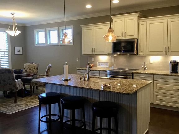 Beautifully upgraded home, in a maintenance free community including mowing, mulching and trash service. All Brick exterior, sodded lawns and an irrigation system. Convenient to shopping, restaurants, parks and schools. Kitchen features granite countertops, beautiful cabinetry and luxury JennAir kitchen appliances. Vaulted Great room with fireplace and custom book cases with built in lighting. 3 bedrooms all on the main, 3 baths with 2 on the main with granite countertops and walk-in-showers. Loft has full bath, 2 closets and extra attic space for storage. Screened in porch to spend outside time with family and friends. Custom closets, soft water system, Rinnai tankless water heater, central vacuum, alarm system and more. This move-in ready home is waiting for you! Welcome Home!