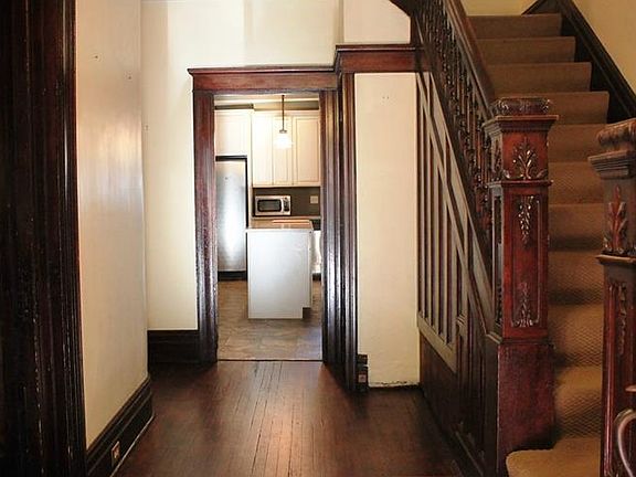 Spacious 4 bedroom home with an updated kitchen with Corian countertops. Beautiful wood trimmed stairs and rooms on main floor. Hardwood floors on the first floor lead you to the updated kitchen with stainless steel appliances and large center island. A chef's delight! Newer 1/2 bath on main floor and updated full bath on 2nd floor. 4th bedroom upstairs is 30x16 and is being newly carpeted. Covered back porch.