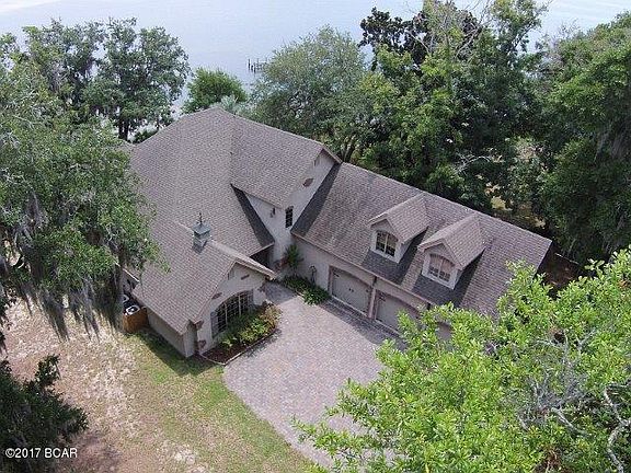 With 4822 square feet under roof and a 3 car garage, this unique, custom built waterfront home provides 180 degree panoramic views of St. Andrews Bay and the Intracoastal Waterway. The deep water dock is located just minutes from Shell Island and the Gulf of Mexico. Old world charm is emphasized throughout the house starting with the welcoming arched brick foyer and continues with beamed and coffered ceilings throughout the house. The kitchen features custom knotty alder cabinets, granite counter tops, Kitchen Aid stainless appliances, wine frig, large pantry and is complemented with a custom vent hood and brick arch over a gas cook top. The master suite features his and hers closets/bathrooms with custom marble topped vanities and a tiled walk-through shower and pedestal bathtub.