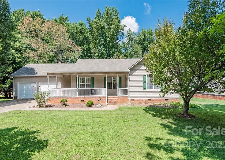 Large rooms add to the charm of this nice ranch home on an almost one-half acre lot in the town of Granite Quarry. No HOA. Rocking chair front porch! Beautiful laminate wood flooring throughout the living areas; other floor coverings include ceramic tile and carpet. The vaulted ceiling in the living room adds to the open feel, and the large windows in the kitchen offer lots of natural light along with a lovely view of the fenced back yard. Kitchen features stainless appliances, modern white cabinets, subway tile backsplash, and Corian countertops; walk-in pantry. The primary suite has a dressing area, large walk-in closet, and private bath. Neutral colors throughout help make this home move-in ready for any buyer! Large fenced back yard with back deck and lower patio for outdoor gatherings. Roof installed in January 2015.
