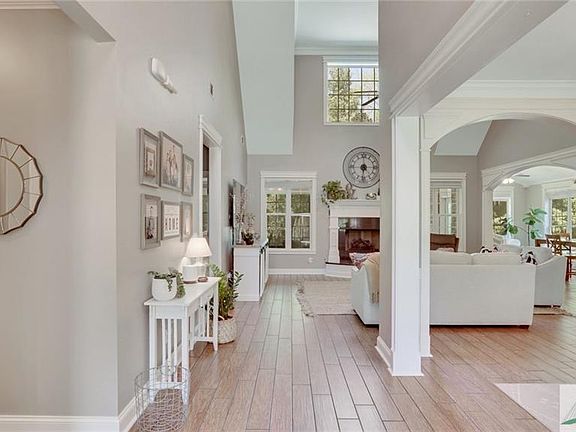 Beautiful custom brick home located in the amenity-filled neighborhood of Buckhead North in Richmond Hill. This stunning 2 story home features a fantastic open floor plan with vaulted ceilings, beautiful appointments throughout including detailed moldings, a gourmet kitchen with double ovens, a cooktop, and a large breakfast bar. Built-in sound system throughout the home, including on the screened back porch overlooking the huge, private, and fully fenced backyard. The owner's suite is located on the first floor with a gorgeous en-suite and walk-in closet. Additional guest bedroom and full bath downstairs. Upstairs there are two spacious guest bedrooms, a full bath, and a huge bonus room. Every bedroom also features great walk-in closets. Laundry room with tons of storage and sink, and three-car garage complete this must-see home.