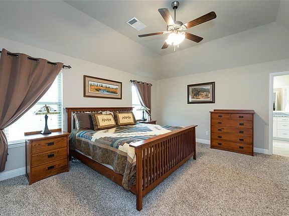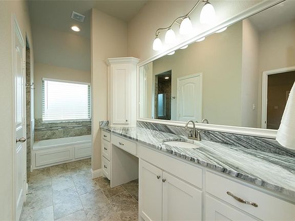 FABULOUS custom home in highly sought after Ranger Creek Estates! You will feel at home from the moment you walk through the 8' stained entry door with wrought iron accents and rainwater glass. The open floor plan greets you with 10' ceilings throughout. A stone fireplace with cedar mantle is always ready with its gas starter and gas logs! Cooking and entertaining is at its finest in this lovely kitchen with an oversized granite island complete with a farmhouse sink, bar area, stainless steel appliances with a gas oven and stove. Enjoy your view out the dining windows framed out with the same beautiful wood detail that frames the front door. The master suite will not disappoint with large his and hers closets, his and hers vanities, as well as separate garden tub and walk-in shower! The hall bathroom has a large double vanity with a nicely finished shower tub. The covered back porch provides room to relax and play! You will love the garage with epoxy finished floors and pegboard wall. 2022-06-29