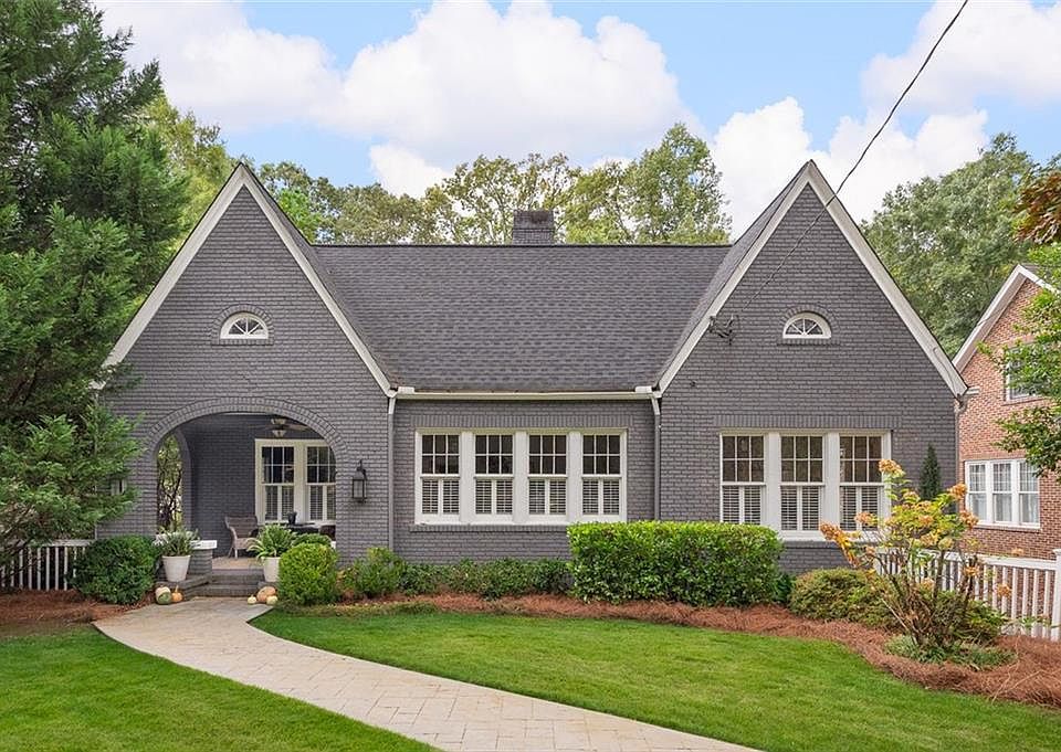 An idyllic picket fence surrounds the front yard, welcoming you to this charming 1920's brick Tudor located on historic Clairemont Avenue. The professionally landscaped garden sets the stage for a classic and timeless home. Inside, you'll find spacious and sprawling single-level living. As you enter, a generous living room with built-ins and a cozy fireplace awaits, along with a separate dining room that flows into a well-appointed kitchen featuring an eat-in bar breakfast area and access to a family room. The front of the home hosts a guest suite, currently used as an office, as well as jack and jill bedrooms sharing a bathroom. A sunlit hallway guides you to the primary suite, complete with a separate shower and tub, a fireplace, and French doors that open to a private balcony overlooking the beautifully landscaped backyard. This deep lot property also offers a large driveway with ample turnaround space for added convenience.