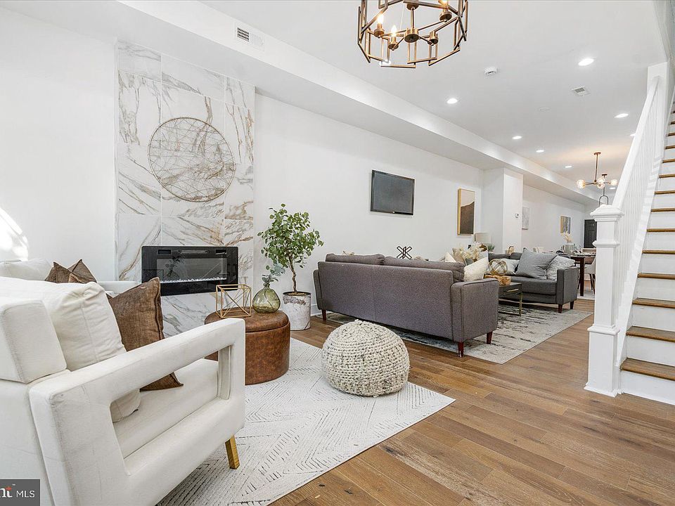 Your new home awaits! Welcome to this beautifully transformed townhome that exemplifies modern living and upscale design. This thoroughly reconstructed haven features 5 bedrooms, 4.5 bathrooms, and a fully finished basement. The top floor is dedicated to a luxurious primary suite, complete with a standalone soaking tub and large walk-in shower. The second floor includes several bedrooms, including a junior suite with its own private bathroom and an additional full bathroom. The basement offers even more space with an extra bedroom, full bathroom and storage space. The meticulous renovation consists of brand new everything down to the studs. Brand new roof, windows, framing, kitchen with stainless steel appliances and custom quartz countertops, bathrooms. Additional elements include vinyl siding, engineered hardwood flooring, luxury tile throughout, 2 beautiful fireplaces, 2 water heaters, 2 HVAC units, brand new plumbing and electrical and much more! The homes on either side of this home are also being rebuilt soon. Eligible for both $10,000 V2V and Live Near Your Work Buyer Incentives!