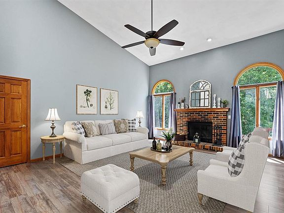 MOVE RIGHT IN - ready for quick closing to make this gem your new HOME!! Gorgeous 3 bed 1.5 story home w/ main floor master boasts 2 full baths/2 half baths is a showpiece on tree-lined lot & features spacious living room w/ 2 story vaulted ceilings, newer LVP flooring, floor to ceiling brick hearth wood burning fireplace & access to newly resurfaced deck overlooking fabulous backyard. Kitchen offers lots of cabinet & counter space & brushed stainless appliances including gas range, microwave, dishwasher & refrigerator. Separate dining room/office & half bath. Main floor master suite w/ vaulted ceiling features attached bath w/separate shower & jetted tub, double bowl vanity & walk-in closet. Main floor laundry room. Upstairs offers 2 bedrooms (one w/walk-in closet) & full bath. Partially finished walkout basement w/ family room, 1/2 bath & tons of storage. Garage features cabinets, heater & service door to sidewalk/stairs leading to back patio. New exterior condensing unit (A/C) '22.
