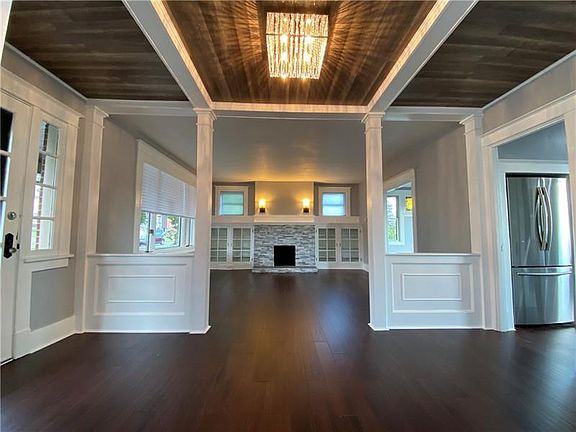 This home has been expertly renovated with all of the modern touches, while maintaining it's original charm. You're welcomed into the home through the large foyer. The original woodwork of the ceiling is accented with wood grain laminate inserts. The living room has the original built-ins, a fireplace updated with stacked stone, and sconces above the mantel. From there you enter the open concept dining room/kitchen. The kitchen has upgrades such as new stainless steel appliances, 2 tone cabinets, wood accent wall, tile backsplash to the ceiling, open shelving, and a peninsula topped with sparkling quartz counters. The main bathroom has a double vanity and custom tile work. The master bath has a custom tile shower, accent wall, and floating vanity. Too much more to list, come see all this amazing home has to offer!