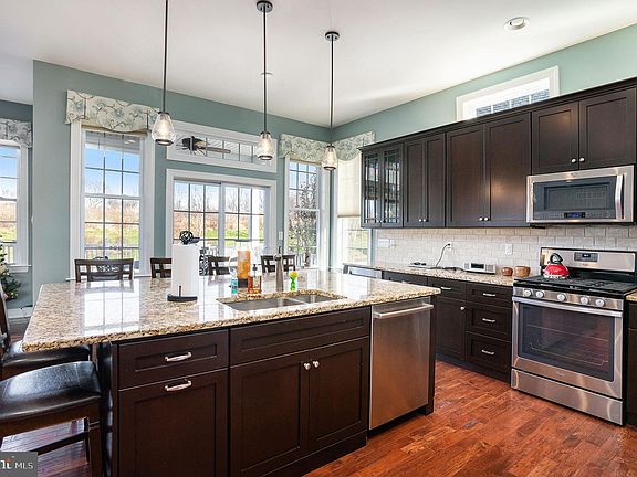 Welcome to 722 Hillview Dr located in the desirable Regency Hills 55+ community that features many lifestyle living options! This Toll Brothers Bayhill Model built in 2015 contains many upgrades. The 10' foot ceilings, 8' doors and open floor plan give you the feeling of space and volume rarely felt in a home of this size. The covered entry leads you to a welcoming double tray ceiling foyer where you immediately feel the warm details the home has to offer. The upgraded distressed hardwood floors are stunning and found throughout the main living areas. From the foyer you have access to a front bedroom/office, full bath, and additional bedroom. Also off the entry foyer is a large coat closet, access to the laundry/garage entry, and access to staircase to the unfinished basement. Enough about the entry, just a few steps further into the home and you take in the openness of the floor plan, and the entertainers delight that this home truly is. The kitchen is the hub of the floor plan and features 42" upgraded espresso cabinets, an oversized 6 person island, stainless steel appliances including beverage refrigerator, an abundance of lighting, and plenty of natural lighting with the included transom windows. The dining room features an octangle tray ceiling with upgraded moldings including crown and chair rail details with designer wall covering below. The family room is set around a floor to ceiling stone fireplace with gas logs, wood mantle and TV with surround sound setup above. Next find your way into the primary bedroom with warm carpeted floors, tray ceiling and crown moldings. The primary bedroom offers an oversized walk-in closet and a custom tile bath featuring double sinks, soaking tub, and full tile showers with frameless glass door entry. Need storage? The basement is bright and cavernous with plenty of space for all your decorations or room to expand. NOW saving perhaps the best for last, step outside onto rear oversized deck that overlooks the community trail and wooded backdrop private setting. The approximately 940 sq ft of outdoor living can be accessed off the kitchen or the family room and offers not one but two roof covered areas with ceiling fans for you to enjoy your favorite book, morning coffee or share your favorite drink with neighbors! Want some sun? There is approximately 640 sq ft of uncovered deck area for your enjoyment! A two car garage, and two car driveway complete this lovely decorated home. Conveniently located to Routes 29 and 422, the Oaks shopping center, Providence Town Center, Wegmans, Target, Movie Theaters, and ever popular downtown Phoenixville. The amenities in this community include the an indoor pool, two outdoor pools, Community Center, Exercise & Fitness Center, Party Room, tennis courts, and the fastest growing sport in the country Pickle Ball courts! This active community has many events to choose from as well. Don't miss out, schedule your private showing today!
