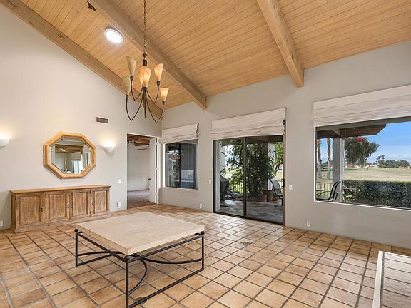 Parklike views of the Dinah Shore Golf Course, This three-bedroom, three-bathroom 2227 square feet Golf Villa in Rancho Mirage. Enter the property through a gated courtyard with outdoor living. Once inside through double door entry, the dramatic living room with wood beamed ceilings, fireplace and wet bar is great for entertaining and flows out through sliders to a back patio. Updated kitchen with slab granite countertops and opens to the dining area with great views and access to the back patio. The Primary Suite contains a large bedroom and a bath with double vanities, spa tub and shower. Two guest suites each with its own bath provide room for family and friends or a den or office. Third bedroom with French doors is used as a den. Memberships are available at Mission Hills CC the home of Gallery Classic Championship, US Open and National Croquet Tournaments, USTA National Tournament. Mission Hills Country Club boasts 3 private golf courses, 27 tennis courts, croquet courts. Golf and Tennis clubhouses. and is a gated guard community w/ unmatched golf & tennis facilities w/convenient access to the Westin Mission Hills resort & spa complex. Ask listing agent about reduced golf rates for Rancho Mirage residents at Mission Hills Pete Dye Westin Resort and Spa.