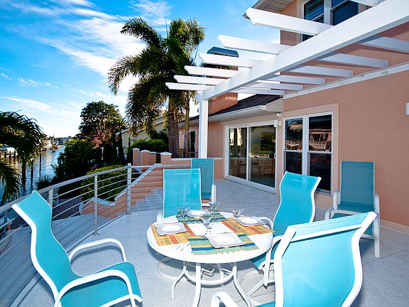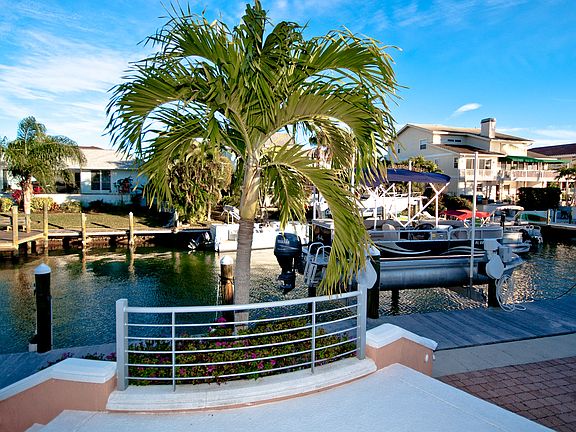 Sought after quiet NORTH POINT HARBOR neighborhood on Key Royale Pristine 3 Bedroom, 2.5 Bath, 2573 Square Foot Home- 190 FEET TO BIMINI BAY, Easy Boating Access to Tampa Bay, the Intercoastal, and The Gulf Of Mexico. Open Floor Plan, Wood Burning Fireplace, Cathedral Ceilings, Fantastic Kitchen with 2 Dishwashers and Wine Cooler. Located at the end of Key Royale in the Cul-De-Sac on the Highest Point on the Key as well as Anna Maria Island. Traffic is Minimal, 6 Month Minimum Rentals. North Point has Community Pool and Tennis Court. Master Suite and Guest Bedroom/Den practically Ground Level with 2+ Bedrooms and a Full Bath Upstairs. Master suite has Private Deck for watching the Sunrise to enjoy your morning coffee! Renovations, Decks, Docks (including 12,000 Lb Boat Lift and a Floating Dock), Seawall all new 2005. Living Room has Surround Sound. Dock is 5 ft wide x 54 ft long 9 Exterior Security Cameras with DVR and Battery Backup are accessible by smart phone anywhere. Invisible dog fence installed, and several preventative Pest Control Systems in place. Large 2 car garage. Offered TURN-KEY FURNISHED.