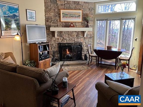 This cozy 2 bedroom/2 bath mountain retreat has lovely mountain views in fall and winter and lush wooded views in spring and summer.. Enjoy beautiful fall and winter sunsets from your private deck. The ski slopes, restaurants and shops at Wintergreen Resort's Mountain Inn are five-minutes away and The Market at Wintergreen, which has just about anything you need, is just down the street. The living room has a floor-to-ceiling stone wood burning fireplace and the kitchen has stainless steel appliances and granite countertops. Floors are Luxury Vinyl Plank with tile in bathrooms, kitchen and foyer. All windows and decking were replaced four years ago. The deck is ground level, providing easy access. The front door has a Yale digital lock that works with both keypad and key. A Knox Box security key box was installed next to the front door by the Wintergreen Fire Department. Responders to an alarm or 911 call remove the key, provide the needed service, and re-lock the door when they leave. Laurelwood is the only Condo Owners Association on the mountain with a private pool for owners, located at the end of the street.